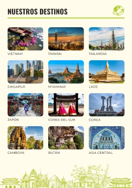 NUESTROS DESTINOS VIETNAM TAIWÁN TAILANDIA SINGAPUR MYANMAR LAOS JAPÓN COREA DEL SUR COREA CAMBOYA BUTÁN ASIA CENTRAL