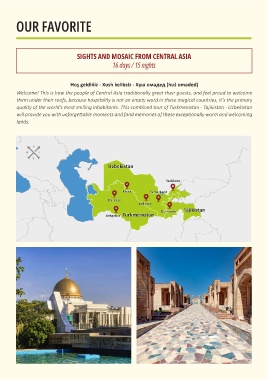 quality of the world’s most smiling inhabitants. This combined tour of Turkmenistan - Tajikistan - Uzbekistan