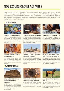 L’ART DE LA CÉRAMIQUE 2H SAVEURS D’OUZBÉKISTAN 3H ÉCRITURE D’ASIE CENTRALE 1H