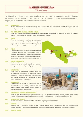 Este itinerario de 11 días ofrece una experiencia única, explorando Samarcanda y Bujará, ciudades milenarias,