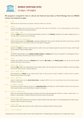 This program does not include all of Japan's UNESCO World Heritage Sites. A complete program including all sites is available upon request.