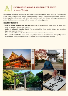 ancestrales et vie urbaine. Des temples bouddhistes comme Senso-ji aux sanctuaires shinto tels que Meiji-