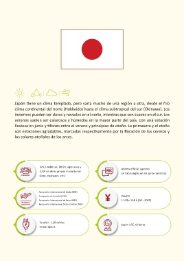 Japón tiene un clima templado, pero varía mucho de una región a otra, desde el frío