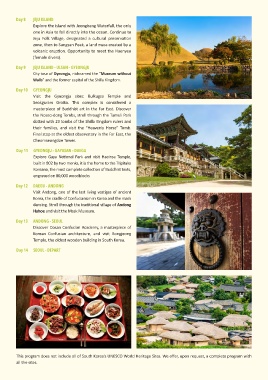 This program does not include all of South Korea’s UNESCO World Heritage Sites. We offer, upon request, a complete program with