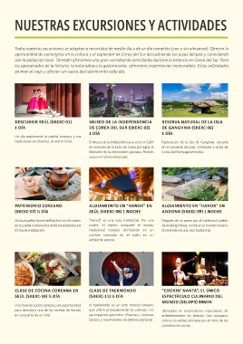 con la población local. También ofrecemos una gran variedad de actividades durante la estancia en Corea del Sur. Para