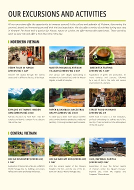 in Vietnam! For those with a passion for history, nature or cuisine, we offer memorable experiences. These activities