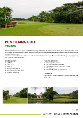 on the world-famous Shwedagon Pagoda. With well-manicured greens and menacing bunkers, fairways snuggling the meandering