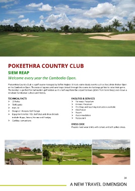 Phokeethra Country Club is a golf course managed by Sofitel Angkor. It hosts some classic events such as the Johnie Walker Open