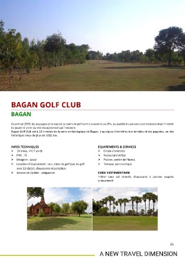 Bagan Golf Club est à 10 minutes de la zone archéologique de Bagan, à quelques kilomètres des temples et des pagodes, un site