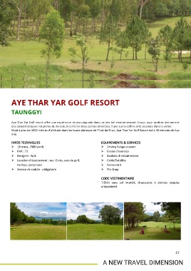 Aye Thar Yar Golf resort offre une expérience de jeu originale dans un très bel environnement. Conçu pour profiter pleinement