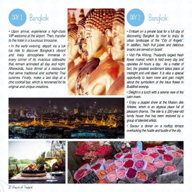VIP welcome at the airport. Then, transfer discovering Bangkok by river to enjoy its